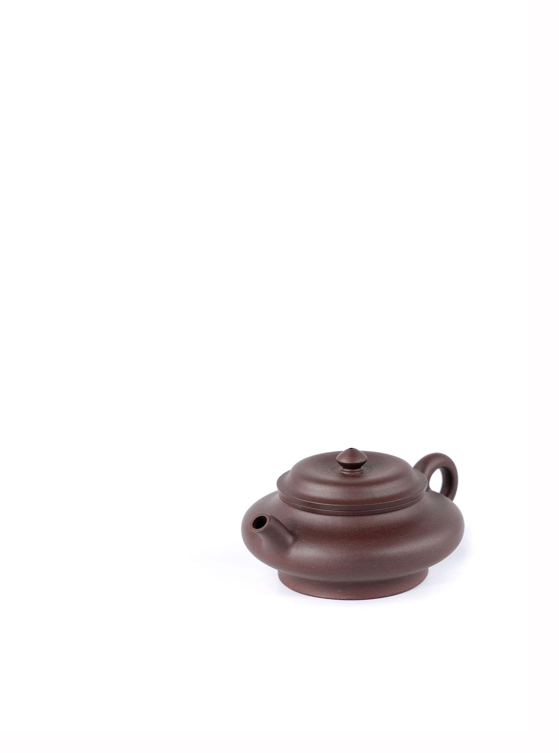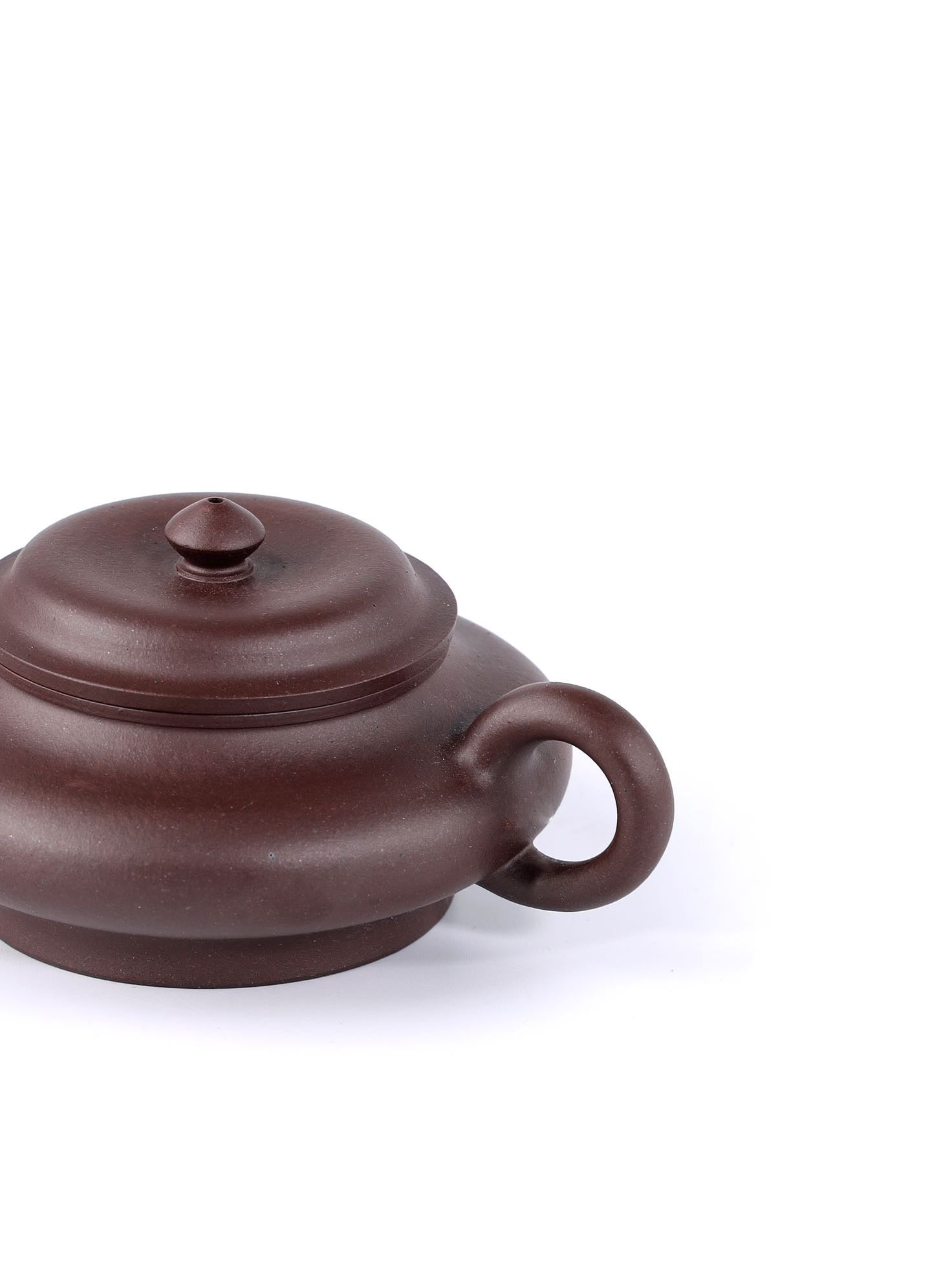 The essence of Dabin’s teapot is its simplicity, yet it exudes a magnificent and grandeur aura. To be considered a well-crafted Xu Bian, the body should be flat enough to maintain its shape without collapsing and flat enough to hold its shape but not too rigid. This will test the artist’s crafting skill and understanding of shapes, lines, and charms. It is easy to imitate but challenging to capture the soul.