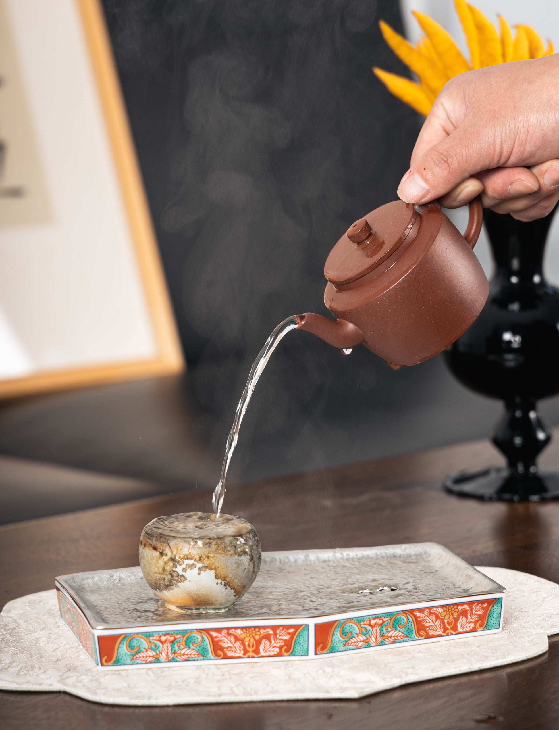 The shape of this pot is strong yet soft, with clean and tidy lines and a straight and neat knob. The fact that the artist was able to achieve such crisp lines using low-mesh clay is a testament to their skill and patience. The soft and smooth lines of the Sanwanliu spout merge and collide with the strong lines of the pot's body, which further highlights the noble wisdom of life that combines strength and softness.