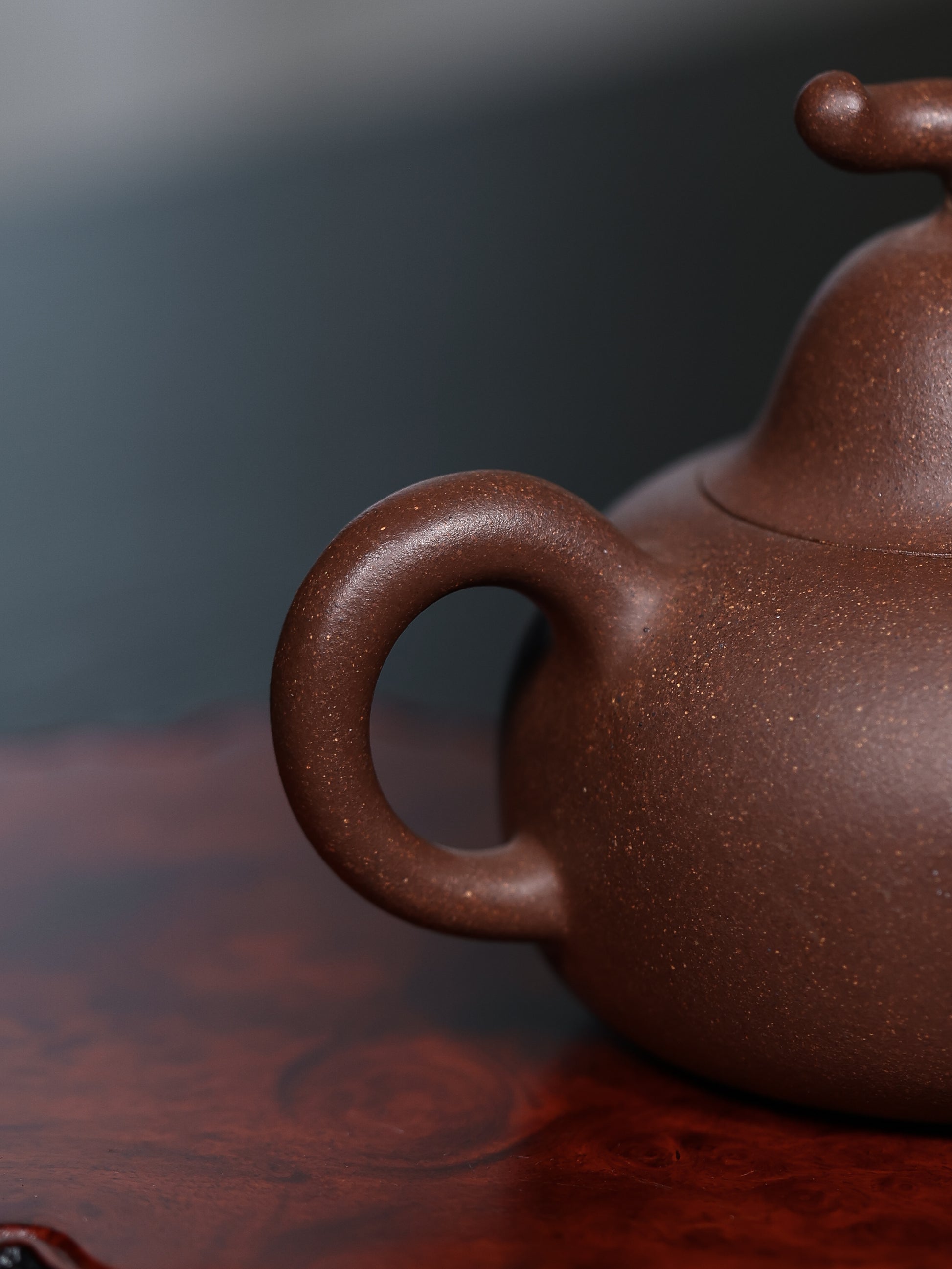The pot’s design is inspired by the Chinese gourd, symbolizing blessings and good fortune. The plump and slightly drooping body of this pot perfectly captures the charm of ripe fruits and the feeling of fruitfulness. This requires the artist to have a deep understanding and application of traditional craftsmanship.