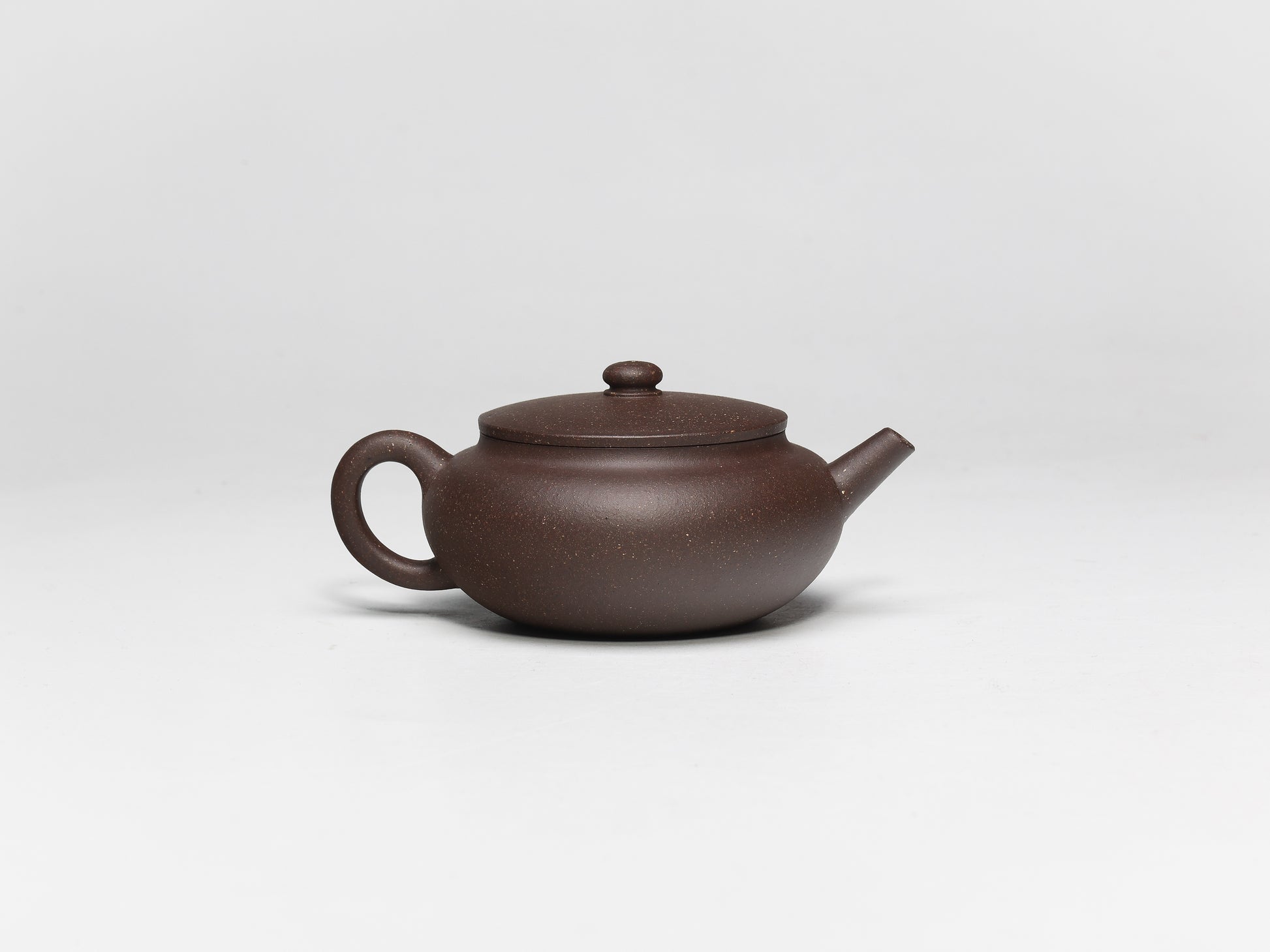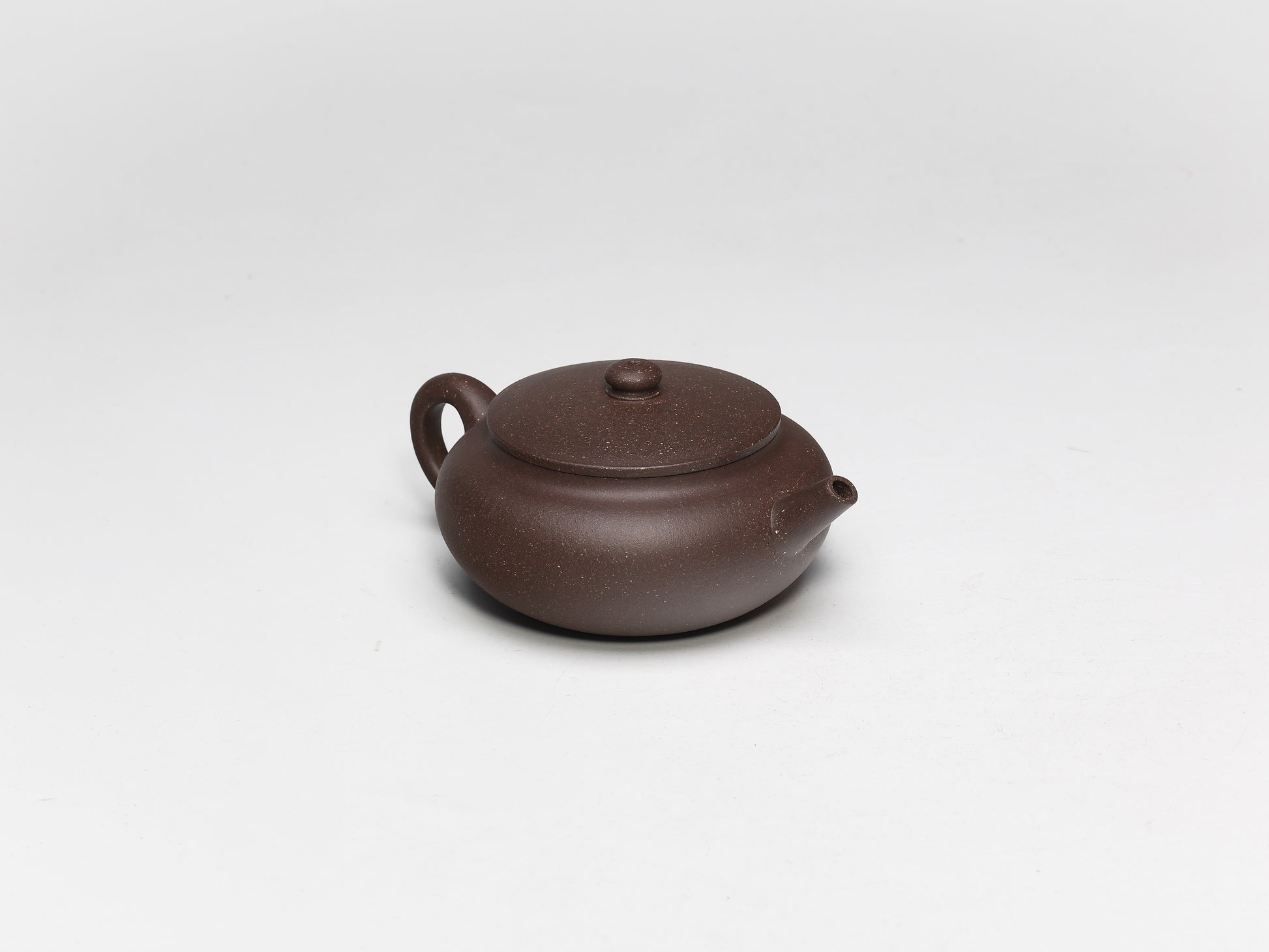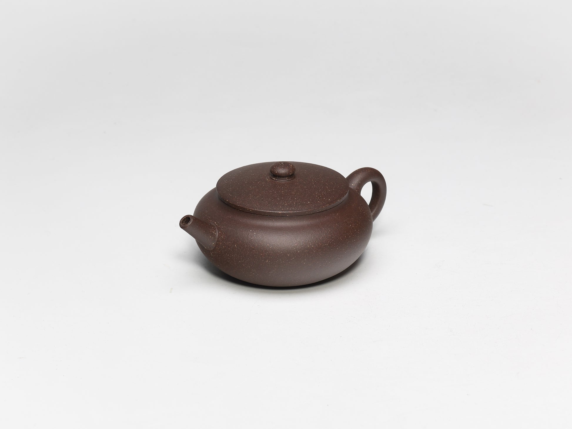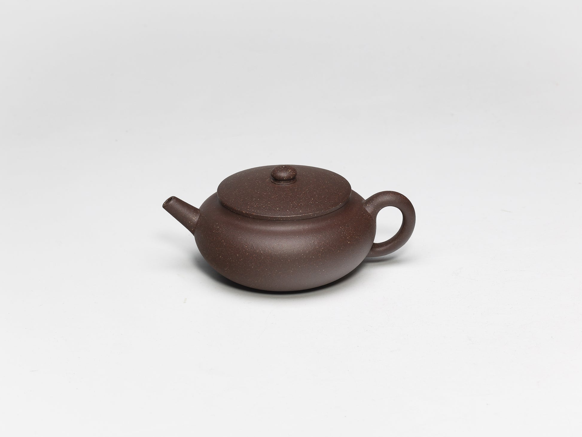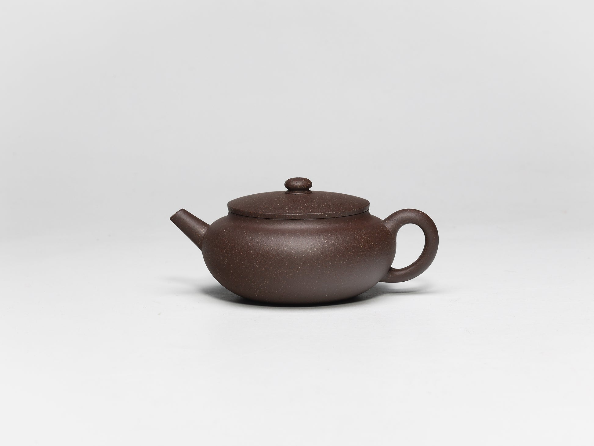 The teapot has a flat and plump round body with a straight spout that pours tea powerfully and neatly. The design of the pot is highly practical and seems to be specifically made for brewing tea. This teapot is a must-have for anyone.